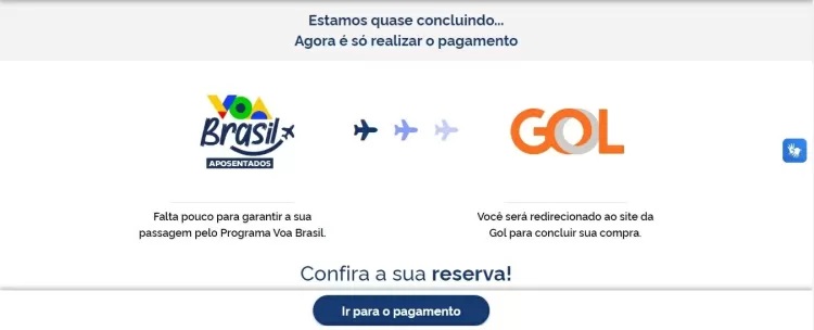 Imagem: Reprodução/ Voa Brasil O sistema redireciona o beneficiário para o site da companhia aérea responsável pela passagem. O pagamento deve ser feito ali, de acordo com as formas de pagamento disponibilizadas pela empresa em questão.